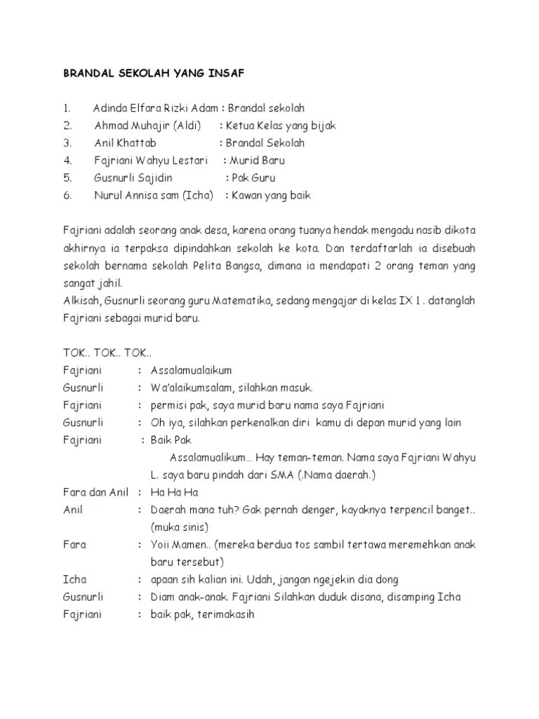 Bahasa indonesia jumlah karakter : Naskah drama merupakan sebuah teks yang isinya adalah dialog beserta dengan gambaran yang ada pada tokoh atau karakter yang terdapat pada . Malas masuk sekolah karena ketinggalan materi pelajaran. Dalam dunia seni, drama bisa . Teks naskah drama sekolah akan menjadi pembahasan kita pada posting artikel pendidikan pada kesempatan kali ini.